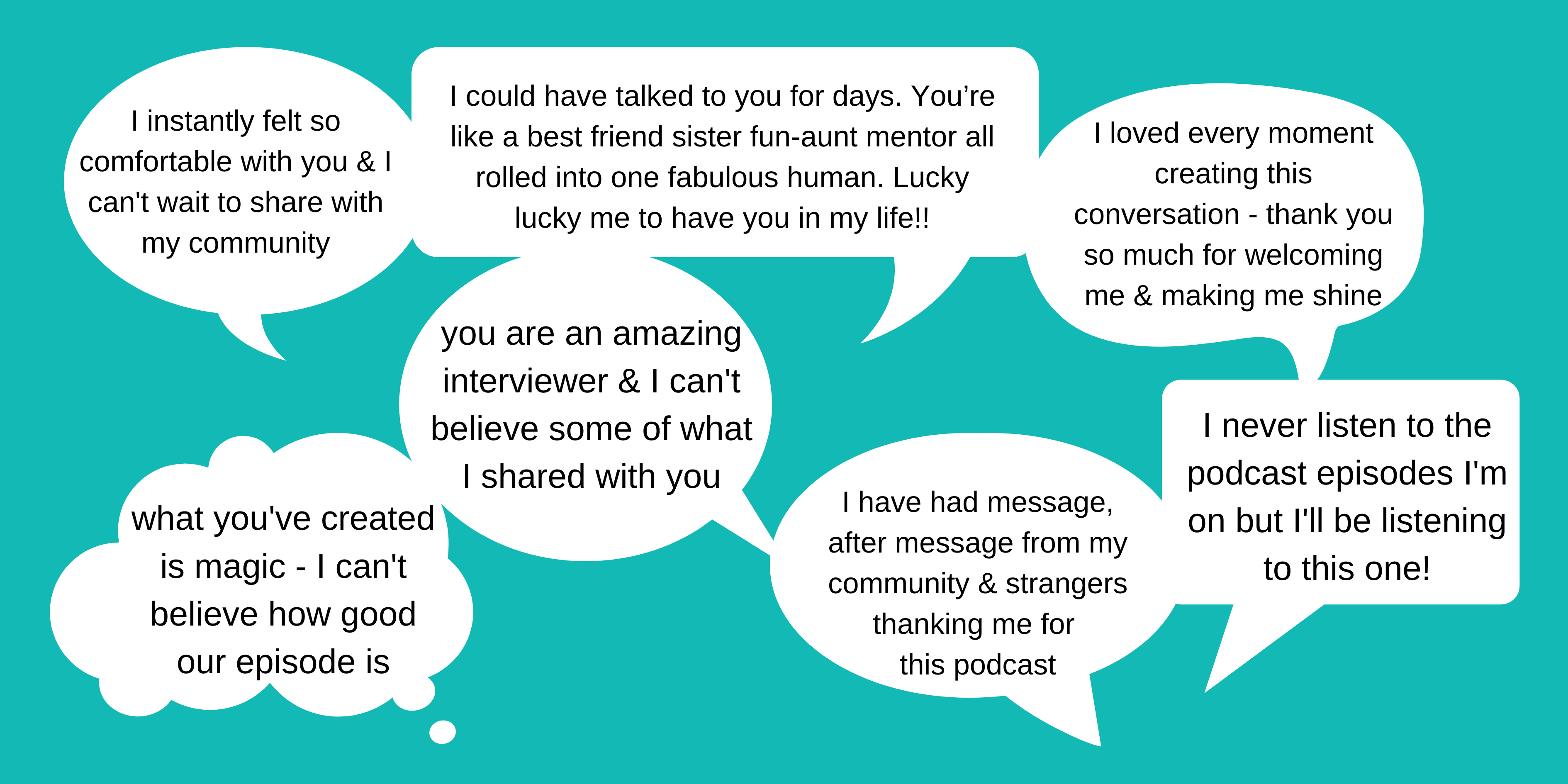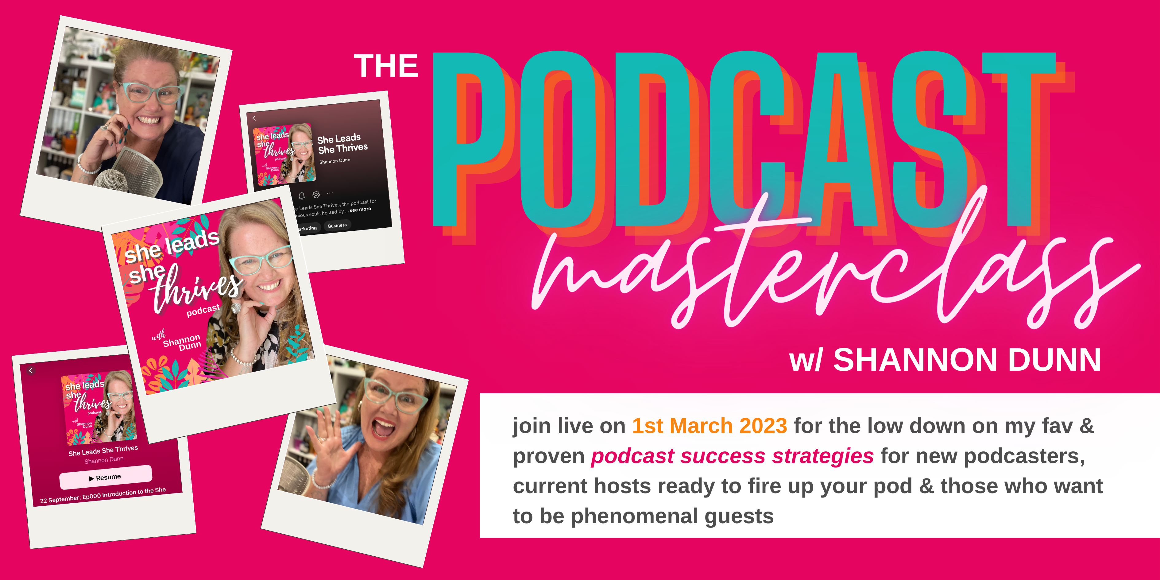 - chat through how to be a phenomenal guest so you maximise your success on every podcast appearance - these are the kind of things I share with my guests and to be honest, most miss out on the opportunity presented to them - those that action what I suggest get the greatest download numbers for their episodes and have co-created a brilliant asset they can use over and over again - this is also a significant aspect of my guest strategy to amplify the success of She Leads She Thrives